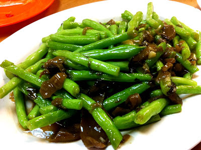 首先上桌的是这道《梅菜炒四季豆》(就是乌龟豆啦!),梅菜配四季豆,很少见的配搭和煮法。